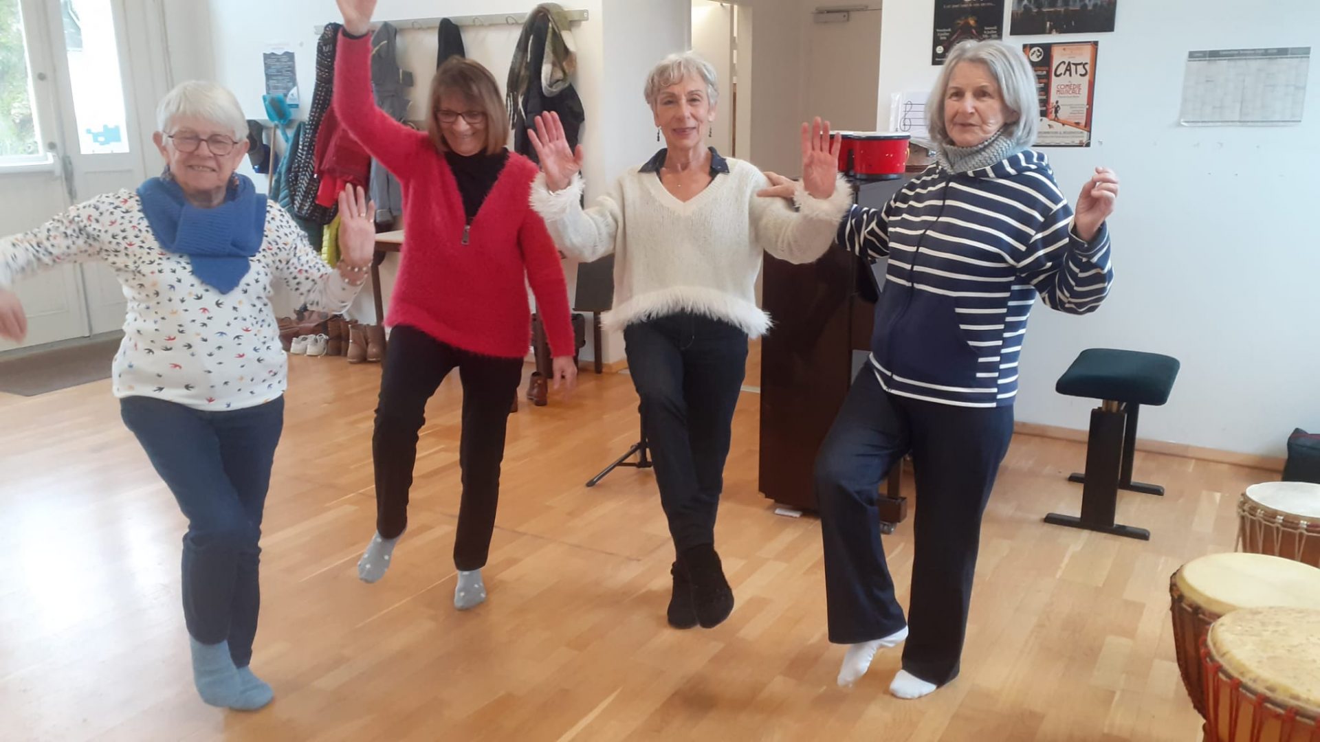 Bouger en rythme, ressentir la musique et ses mouvements, améliorer l’équilibre, prévenir les chutes, stimuler l’imagination.